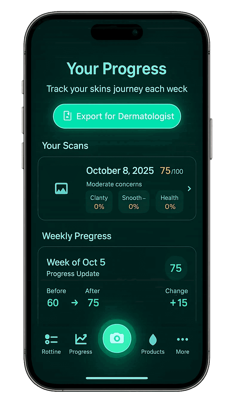 Your skin is unique. We help you understand it. By tracking your progress with weekly photos and logging your routine, our AI learns what works for you, fine-tuning your plan to deliver consistent results.